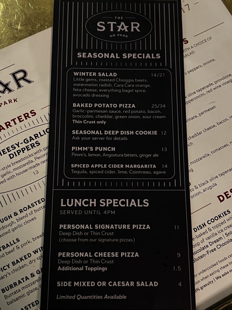 Whether you're indulging in a mouthwatering pizza or enjoying happy hour specials, The Star on Park guarantees a memorable outing.